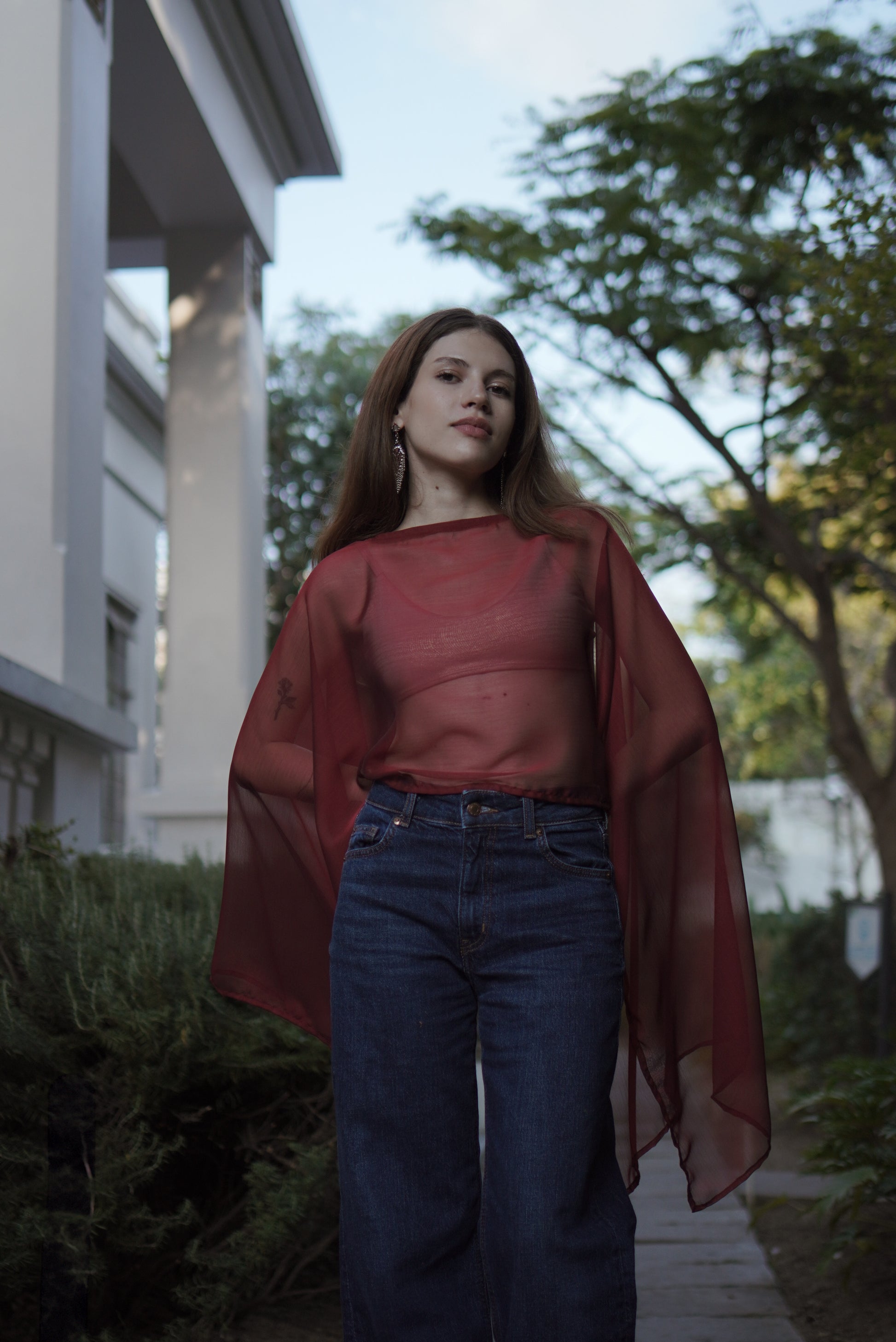Al ser confeccionada con shifon- shifon tornasol, una tela semitransparente, te da la oportunidad de jugar con los contrastes que utilices en las prendas de abajo, ya sea un top estampado, en sólido, un bralette de encaje o incluso traje de baño.