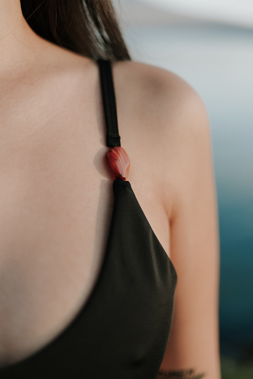 Sus tirantes ajustables permiten un ajuste perfecto, para diferentes tipos de gusto y llevan detalles en piedras naturales, aportando un toque sofisticado y unico.